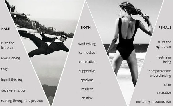 Typically, one of these energies is dominant. You may recall a friend who is male, but he doesn't struggle to express his feelings. Or contrary, a female friend who has the go-and-get mindset which is based on masculine energy. Hence a man and woman can be predominantly feminine or masculine.